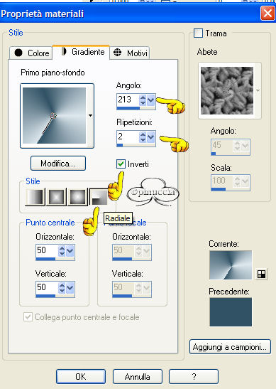Crea un gradiente di primo piano/sfondo con questi settaggi: