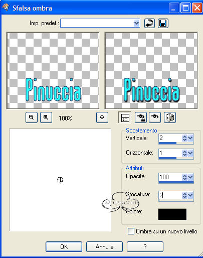 32. Effetti>Effetti 3D>Sfalsa ombra, con i seguenti settaggi: