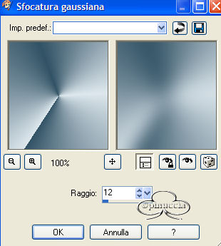 4. Regola>Sfocatura>Sfocatura gaussiana, con i seguenti settaggi: