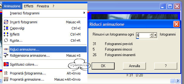 54. Animazione>Riduci l'animazione e nella casella "Rimuovi un fotogramma ogni" scrivi 6.