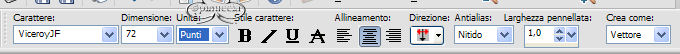 54. Attiva lo strumento Testo, scegli il font Viceroy JF e scrivi il tuo nome con i seguenti settaggi: