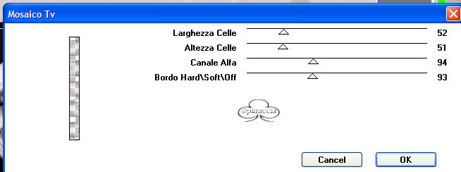 31. Effetti>Plugins>Italian Editors effect>Mosaico tv con i seguenti settaggi: