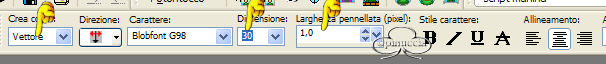 30. Attiva lo strumento testo e cerca il font Blobfont G98 con questi settaggi: