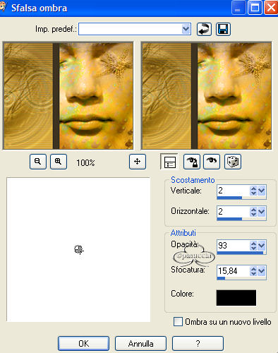 38. Effetti>Effetti 3D>Sfalsa ombra con i seguenti settaggi: