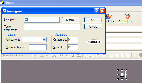 Inserisci>Immagine, e anche in questo caso nella finestra vedrai le tre x.