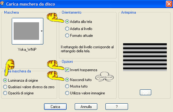 5. Livelli>Carica/Salva maschera>Carica maschera da disco e cerca la maschera Yoka-WNiP, con i seguenti settaggi: