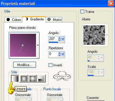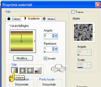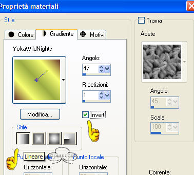 53. Imposta il colore di primo piano su gradiente e cerca il gradiente YokaWildNights, con questi settaggi: