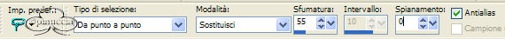 58. Attiva lo strumento Selezione a manolibera con i seguenti settaggi: