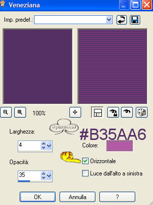 10. Effetti>Effetti di trama>Veneziana, con i seguenti settaggi: