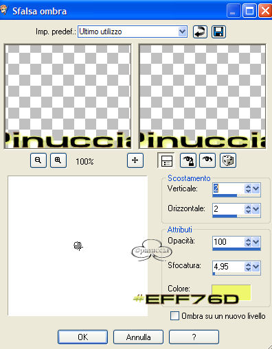 67. Effetti>Effetti 3D>Sfalsa ombra con i seguenti settaggi.