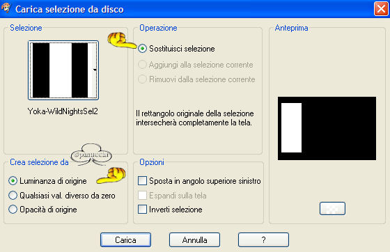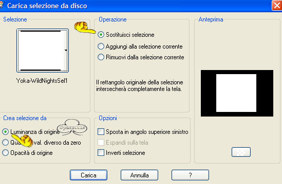 8. Selezione>Carica/Salva selezione>Carica selezione da disco e cerca la selezione Yoka-WildNightSel1.