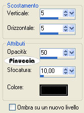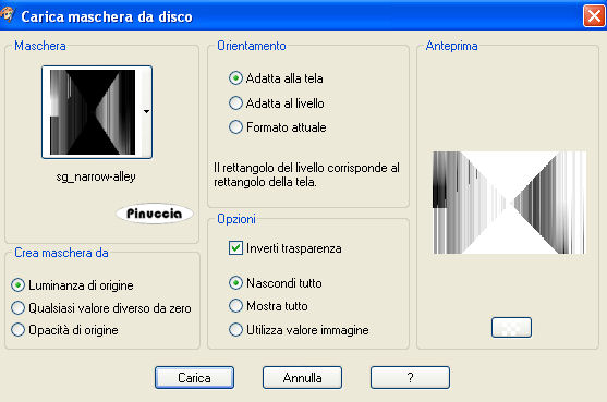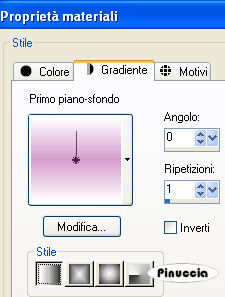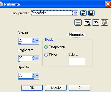 qui puoi trovare qualche risposta ai tuoi dubbi. Se l'argomento che ti interessa non è presente, ti prego di segnalarmelo. Questo tutorial è stato creato e tradotto con PSP X, ma può essere eseguito anche con le altre versioni di PSP. Occorrente: Materiale qui Apri una nuova immagine trasparente 450 x 300 pixels, e riempila con il colore bianco.Livelli>Nuovo livello raster. Imposta il colore di sfondo con un colore scelto dai tuoi tubes e passa il colore di primo piano a Gradiente di primo piano/sfondo, con i seguenti settaggi: ![]() Riempi il livello con il gradiente.Livelli>Carica/Salva maschera>Carica maschera da disco. Cerca e carica la maschera sg narrow alley: ![]() Livelli>Unisci>Unisci gruppo. Livelli>Unisci>Unisci tutto. Effetti>Effetti 3D>Pulsante, con i settaggi standard. ![]() Immagine>Aggiungi bordatura, 10 pixels, simmetriche, con il colore bianco. Immagine>Aggiungi bordatura, 1 pixel, simmetriche, con un colore scuro scelto dall'immagine. Immagine>Aggiungi bordatura, 10 pixels, simmetriche, con il colore bianco. Immagine>Aggiungi bordatura, 1 pixel, simmetriche, con il colore scuro. Immagine>Aggiungi bordatura, simmetriche non selezionato, con il colore bianco: ![]() Seleziona questo bordo con la bacchetta magica ![]() Livelli>Nuovo livello raster. Apri il tube "flower" e vai a Modifica>Copia. Torna al tuo lavoro e vai a Modifica>Incolla nella selezione. Mantieni selezionato. Effetti>Effetti 3D>Sfalsa ombra: ![]() Ripeti l'Effetto Sfalsa ombra, cambiando verticale e orizzontale con -5. Selezione>Deseleziona. Abbassa l'opacità di questo livello al 60%. Attiva nuovamente il tube "flower". Immagine>Ridimensiona, al 75%, tutti i livelil non selezionato. Modifica>Copia. Torna al tuo lavoro e vai a Modifica>Incolla come nuovo livello. Regola>Messa a fuoco>Metti a fuoco. Posiziona il fiore come nel mio esempio.Apri il tube "yd" e vai a Modifica>Copia. Torna al tuo lavoro e vai a Modifica>Incolla come nuovo livello. Sposta il tube a sinistra.Abbassa l'opacità di questo livello al 70%. Livelli>Unisci>Unisci tutto. Attiva lo strumento Testo , seleziona il font fornito e scrivi un testo sull'immagine, senza dimenticare di aggiungere il tuo nome e/o il tuo watermark.Immagine>Aggiungi bordatura, 1 pixel, simmetriche, con il colore nero e salva in formato jpg. ![]() Se hai problemi o dubbi, o trovi un link non funzionante, o anche soltanto per un saluto, scrivimi. 20 Febbraio 2009 |