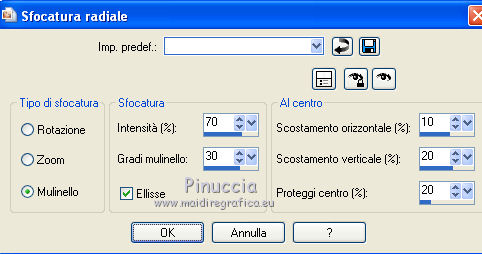 25. Regola>Sfocatura>Sfocatura radiale, con i settaggi precedenti.
