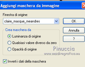 Seleziona la maschera "claire_masque_meandres", con i seguenti settaggi.