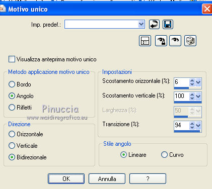 3. Effetti>Effetti di immagine>Motivo unico, con i settaggi standard.