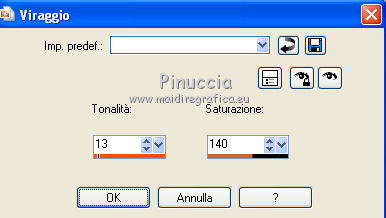 9. Regola>Tonalità e saturazione>Viraggio, con i settaggi precedenti.