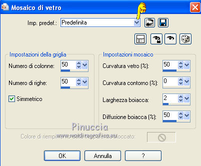 5. Effetti>Effetti di trama>Mosaico di vetro, con i settaggi standard.