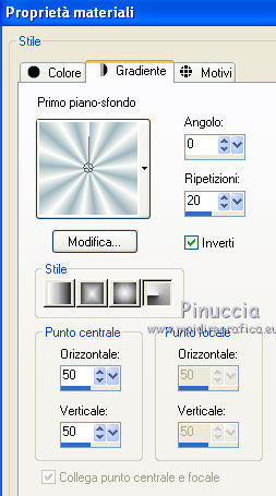 Passa il colore di primo piano a Gradiente, stile Radiale, con i seguenti settaggi: