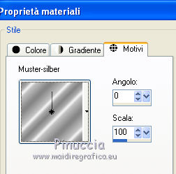 18. Passa il colore di sfondo a Motivi e seleziona un motivo argento a tua scelta, con i seguenti settaggi.