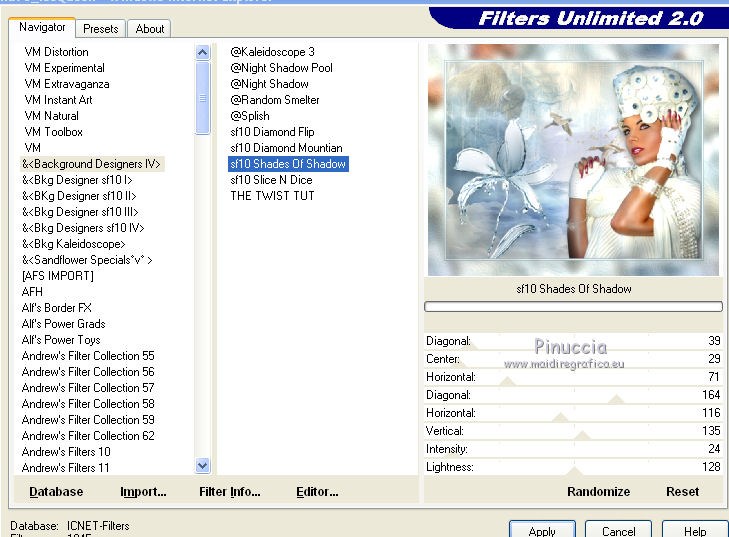 22. Effetti>Plugins>Filters Unlimited 2.0 - Background DesignersIV - sf10 Shades of shadow, con i settaggi standard.