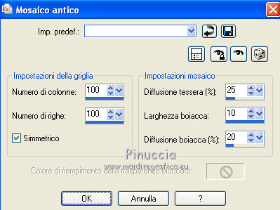 Effetti>Effetti di trama>Mosaico antico, con i settaggi precedenti.