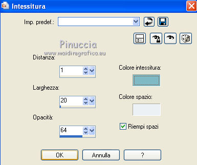 11. Effetti>Effetti di trama>Intessitura, con i settaggi precedenti.