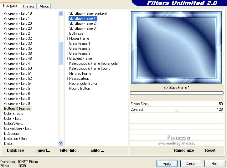 26. Effetti>Plugins>Filters Unlimited 2.0 - Buttons and Frames - 3D Glass Frame 1 con i settaggi standard.