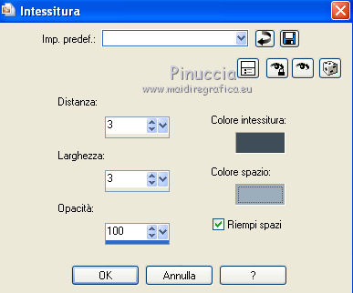 colore intessitura: colore di sfondo; colore spazio: colore di primo piano.