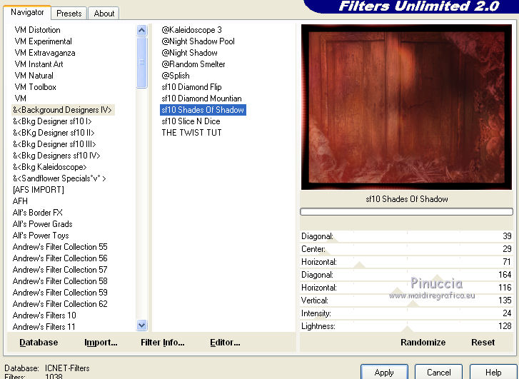 16. Effetti>Plugins>Filters Unlimited - Background Designers IV - Shades of shadows, con i settaggi standard.