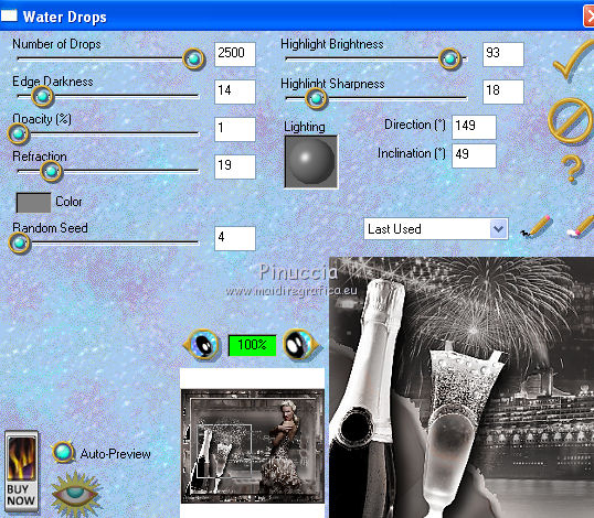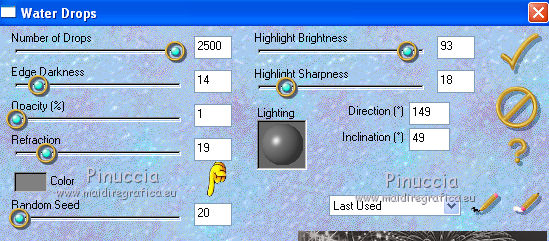 Effetti>Plugins>Eye Candy 3.1 - Water Drops - Random Seed a 20 e ok.