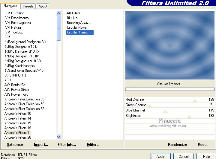 5. Effetti>Plugins>Filters Unlimited 2.0 - Andrews Filter 1 - Circular tremors, con i settaggi standard.