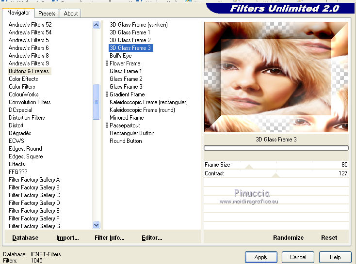 5. Effetti>Plugins>Filters Unlimited 2.0 - Buttons & frames - 3D Glass Frame 3.