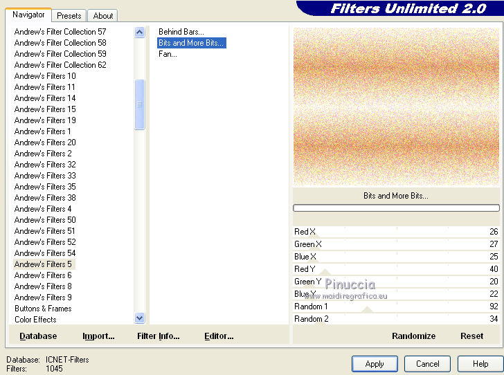 12. Effetti>Plugins>Filters Unlimited 2.0 - Andrew's Filter 5 - Bits and more bits, con i settaggi standard.