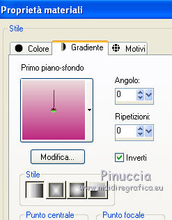 Passa il colore di primo piano a Gradiente, stile Lineare, con i seguenti settaggi.