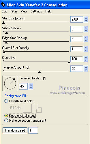 33. Effetti>Plugins>Alien Skin Xenofex 2.0 - Constellation, clicca una volta su Random Seed e ok.