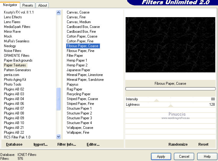 20. Effetti>Plugins>Filters Unlimited 2.0 - Paper Textures - Fibrous Paper, Coarse, con i settaggi standard.