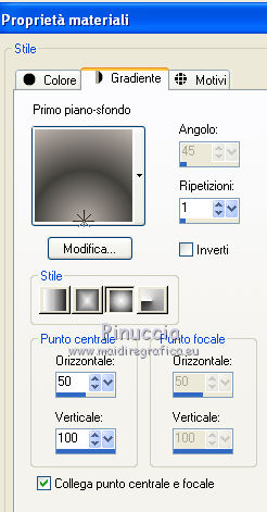 Passa il colore di sfondo a Gradiente, stile Sprazzo di luce, con i seguenti settaggi.