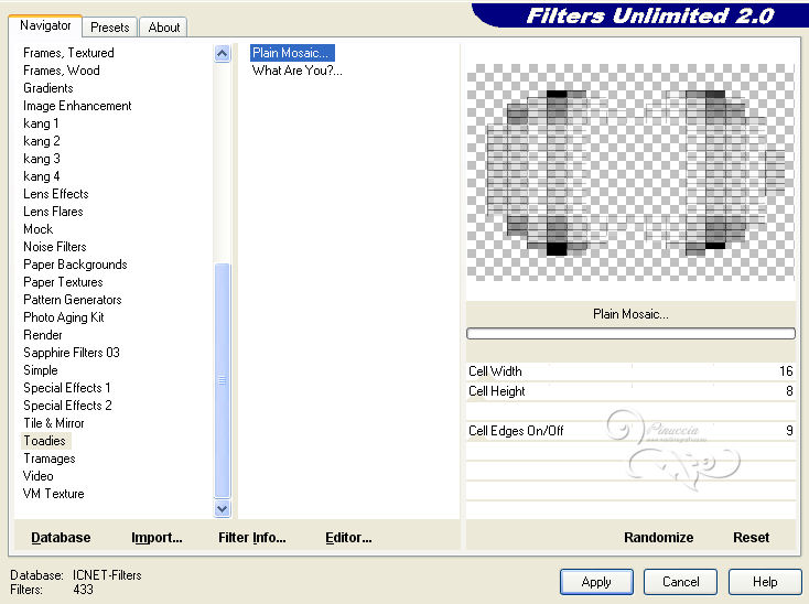 13. Effetti>Plugins>Filters Unlimited 2.0 - Toadies – Plain Mosaic.