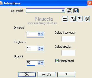 Effetti>Effetti di trama>Intessitura - entrambi i colori impostati con il colore di primo piano.