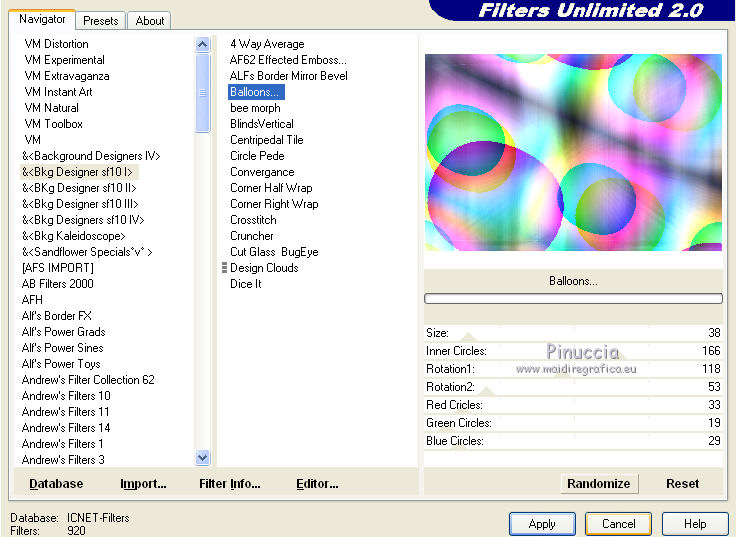 14. Effetti>Plugins>Filters Unlimited 2.0 - &<BKG Designersf10I> - Balloons.