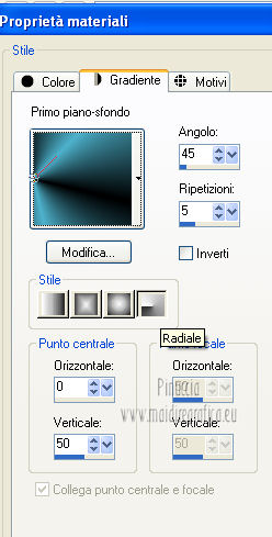 2. Passa il colore di primo piano a Gradiente, stile Radiale, con i seguenti settaggi.