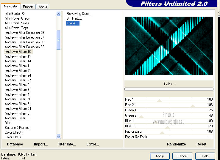 27. Effetti>Plugins>Filters Unlimited 2.0 – Andrew’s Filters 10 – Twins.