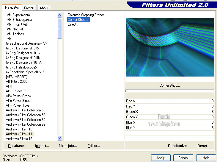 29. Effetti>Plugins>Filters Unlimited 2.0 – Andrew’s Filters 11 – Corner Shop.
