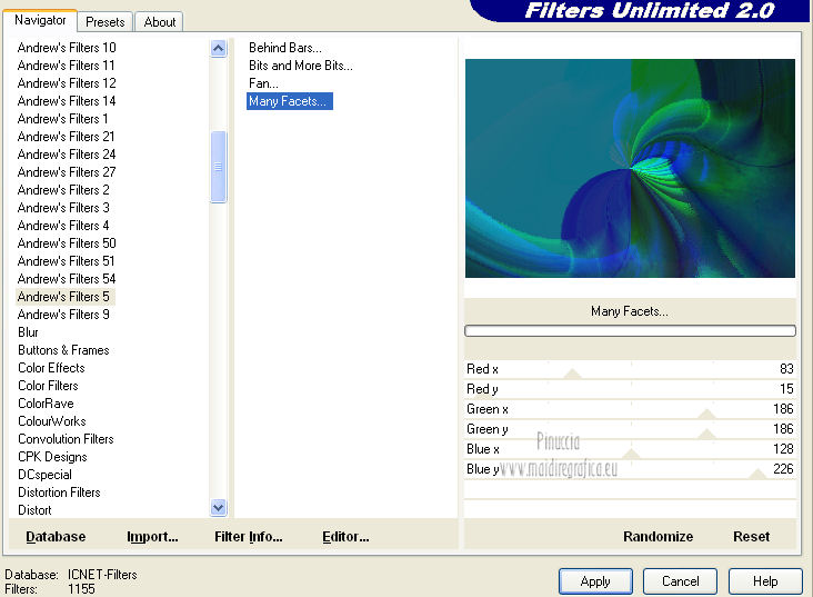Effetti>Plugins>Filters Unlimited 2.0 – Andrew’s Filters 5 – Many Facets.