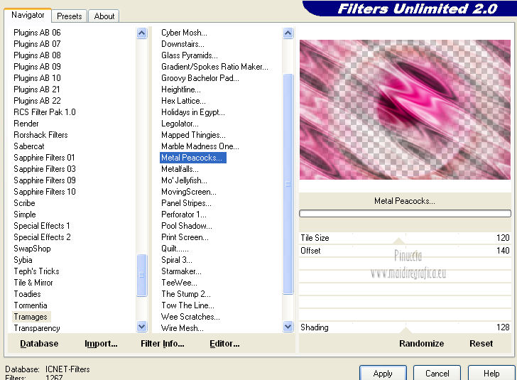 25. Effetti>Plugins>Filters Unlimited 2.0 – Tramages – Metal Peacocks.