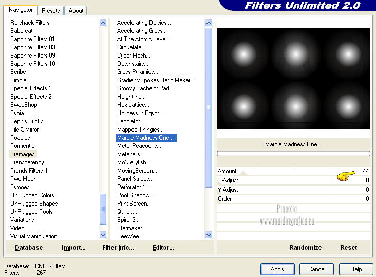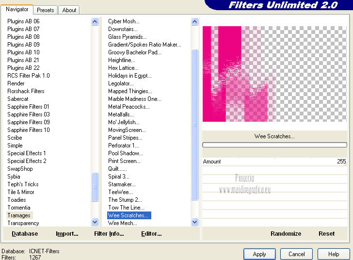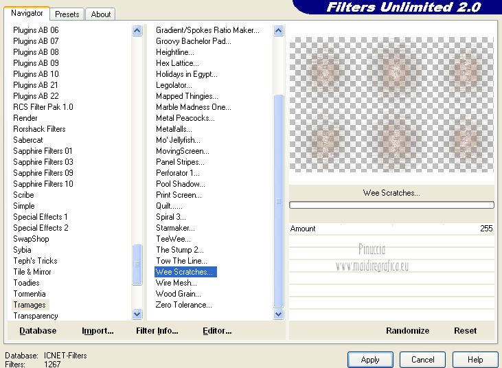 I filtri Transparence, Tramages e Simple si possono usare da soli o importati in Filters Unlimited.