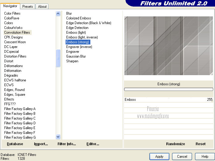 10. Effetti>Plugins>Filters Unlimited 2.0 – Convolution Filters – Emboss (strong).