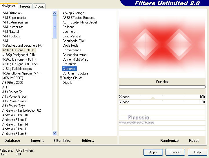 Effetti>Plugins>Filters Unlimited 2.0 - &<BKG Designersf10I> - Cruncher.