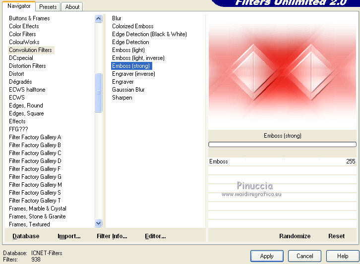 11. Effetti>Plugins>Filters Unlimited 2.0 - Convolution Filters - Emboss(strong).