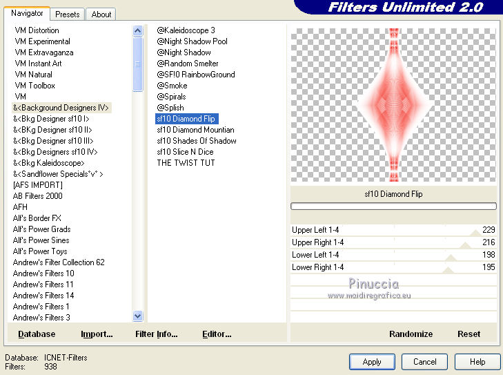 16. Effetti>Plugins>Filters Unlimited 2.0 - &<Background DesignersIV> sf10 Diamond Flip.